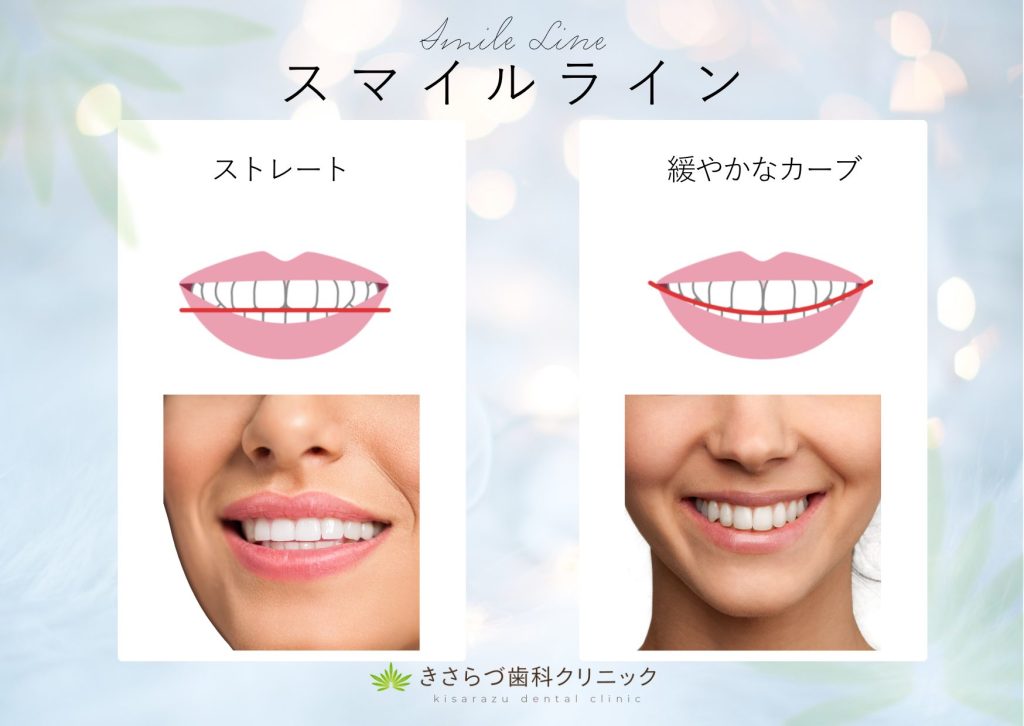 スマイルラインがまっすぐだと少し硬い印象になると言われています。
